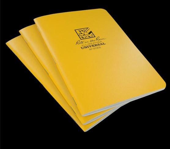 The side spiral notebook has many colors available. A medium size all weather EDC notebook!